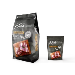 KUDO TURKEY & DUCK MINI ADULT — це повноцінний, повністю збалансований сухий корм для собак дрібних порід старше 12 місяців. Технологія холодного віджиму та високий вміст волокон забезпечують дуже хорошу засвоюваність, тому цей корм також підходить для харчування чутливих собак. У нашому виробничому процесі ми не використовуємо жодних штучних барвників чи ароматизаторів, а високий відсоток свіжого м'яса стимулює апетит навіть у найвибагливіших наших вихованців. АНАЛІТИЧНІ СКЛАДИ: білки 28%, жири 14,6%, сира клітковина 3,4%, сира зола 5,4%, кальцій 1,1%, фосфор 0,85%, натрій 0,15%, волога макс. 10%. СИРОВИНА: зневоднене м’ясо індички та качки (34%); індички, гусячий і курячий жир (14%); сушений горох (9%); сушені насіння гречки (не крупи); вівсяні пластівці (8%); печінка індички (8%); кукурудзяні пластівці; сушений гарбуз (2%); сушене яблуко (1,8%); сушена морква (1,2%); насіння льону; ріжкового дерева; екстракт цикорію; сушені трави (ромашка, розмарин, петрушка) (0,3%); бета-глюкани; суміш вітамінів і мінералів.