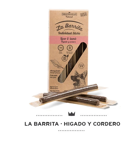 La Barrita М'ясні палички для собак з ягням і лівером La Barrita з MEDITERRANEAN NATURAL - це гіпоалергенні ласощі преміум якості. Виготовлені в Іспанії. Не містять глютену, штучних барвників та ГМО. Збагачені Омега 3, Омега 6 та олеїновою кислотою. 12 шт / упаковка, кожна паличка окремо завакуумована. Склад: М'ясо 73% (30% м'ясо ягняти, 25% хамон, 10% свинна печінка, 8% м'ясо яловичини), рис. Харчові добавки: олія орегано, розмарин. Добова норма годівлі: Маса тіла тварини: 1-10 кг - до 2 штук 11-20 кг - до 3 штук 21-30 кг - до 5 штук Більше 30 кг - до 6 штук