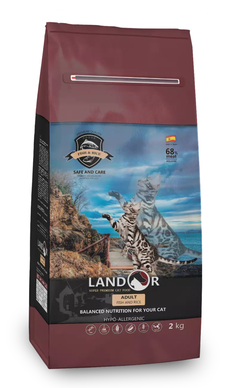 LANDOR Повнораціонний сухий корм для дорослих кішок риба з рисом 10 кг