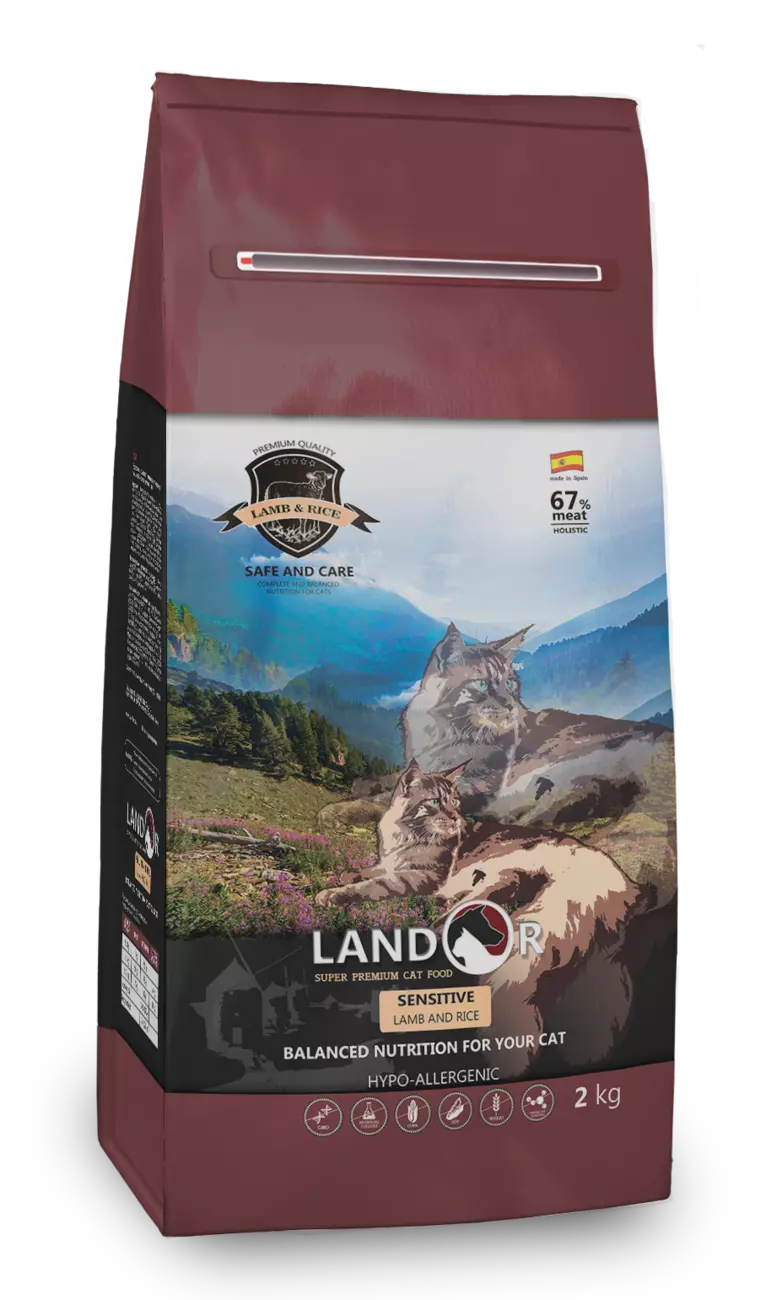 LANDOR Повнораціонний сухий корм для дорослих котів з чутливим травленням Ягня з рисом 10 кг