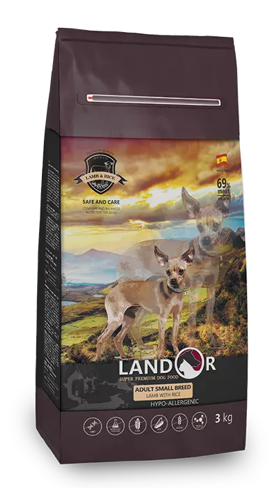 LANDOR Повнораціонний сухий корм для дорослих собак дрібних порід ягня з рисом 1 кг