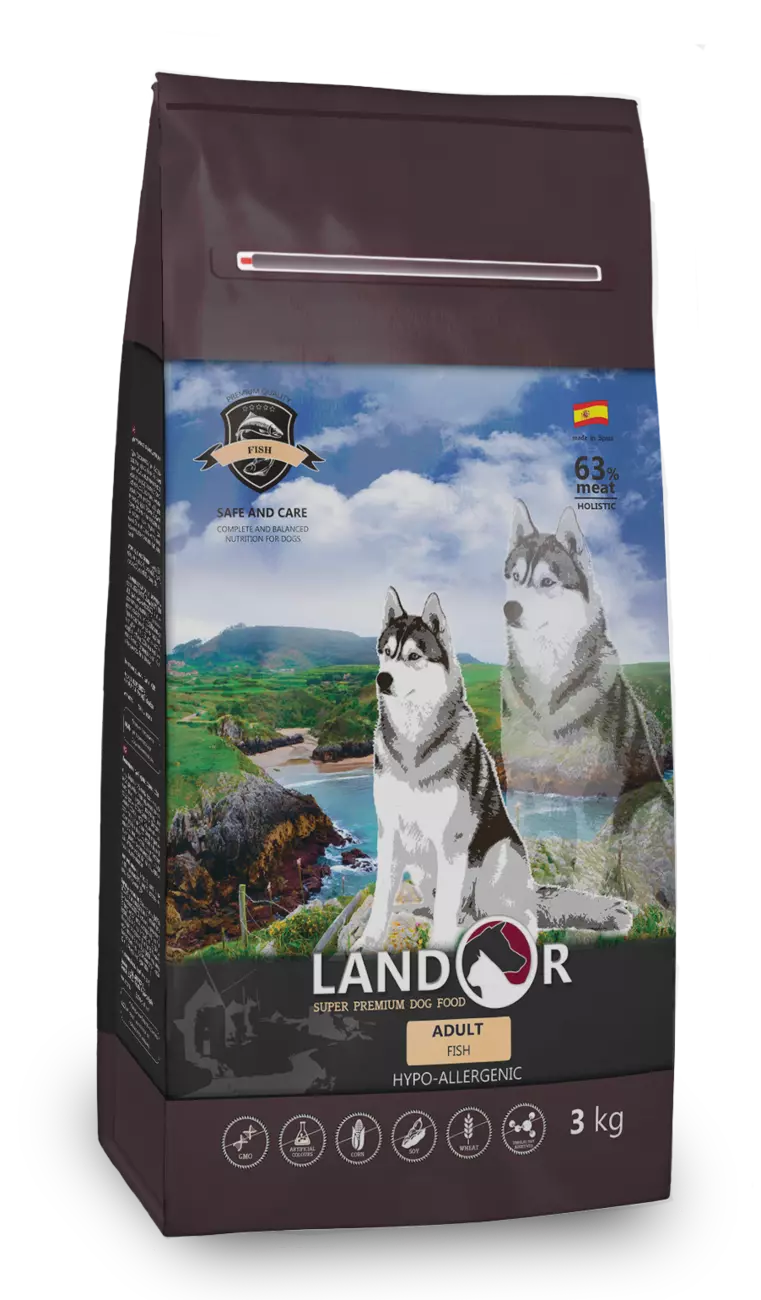 LANDOR Повнораціонний сухий корм для дорослих собак всіх порід риба з рисом 15 кг