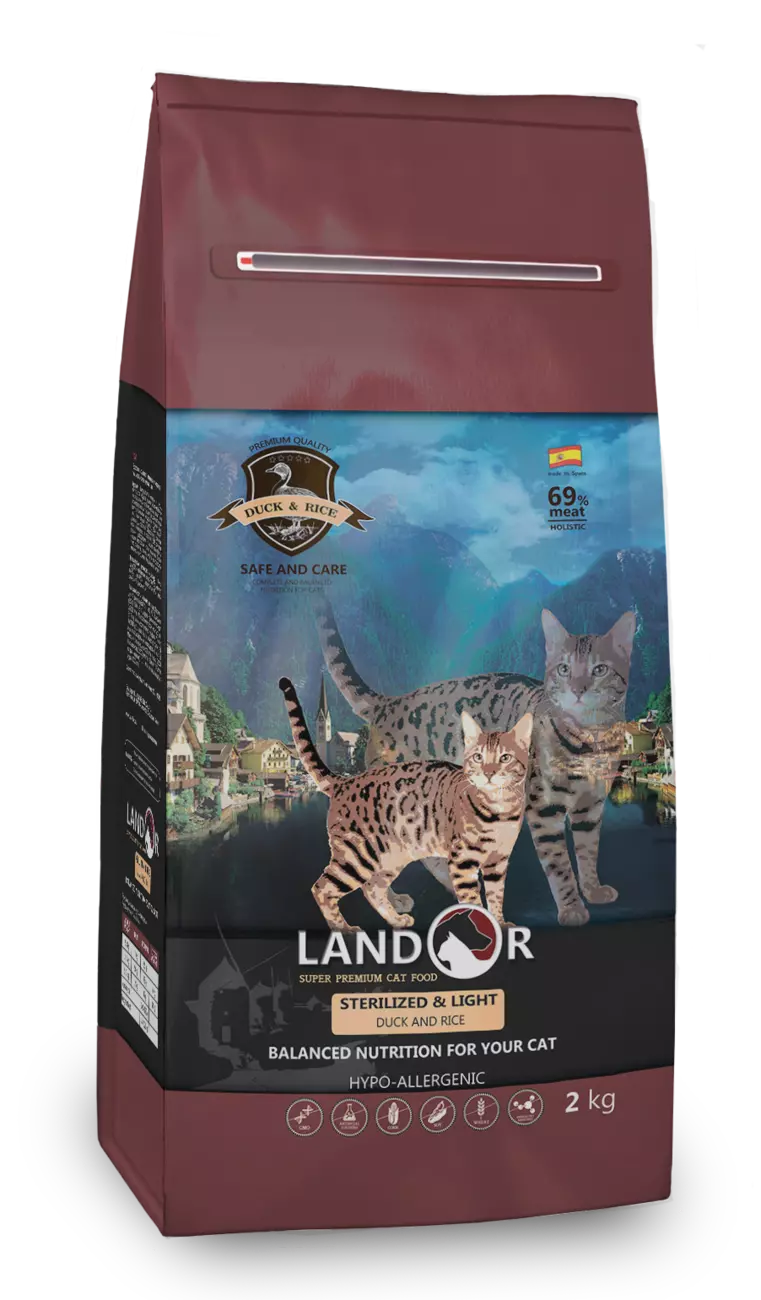 LANDOR Повнораціонний сухий корм для кішок з надмірною вагою і стерилізованих качка з рисом 2 кг