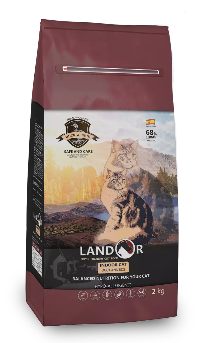 LANDOR Повнораціонний сухий корм для котів, які живуть в приміщенні Качка з рисом 2 кг
