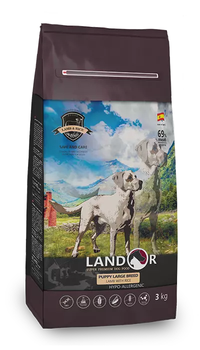 LANDOR Повнораціонний сухий корм для цуценят великих порід ягня з рисом 15 кг