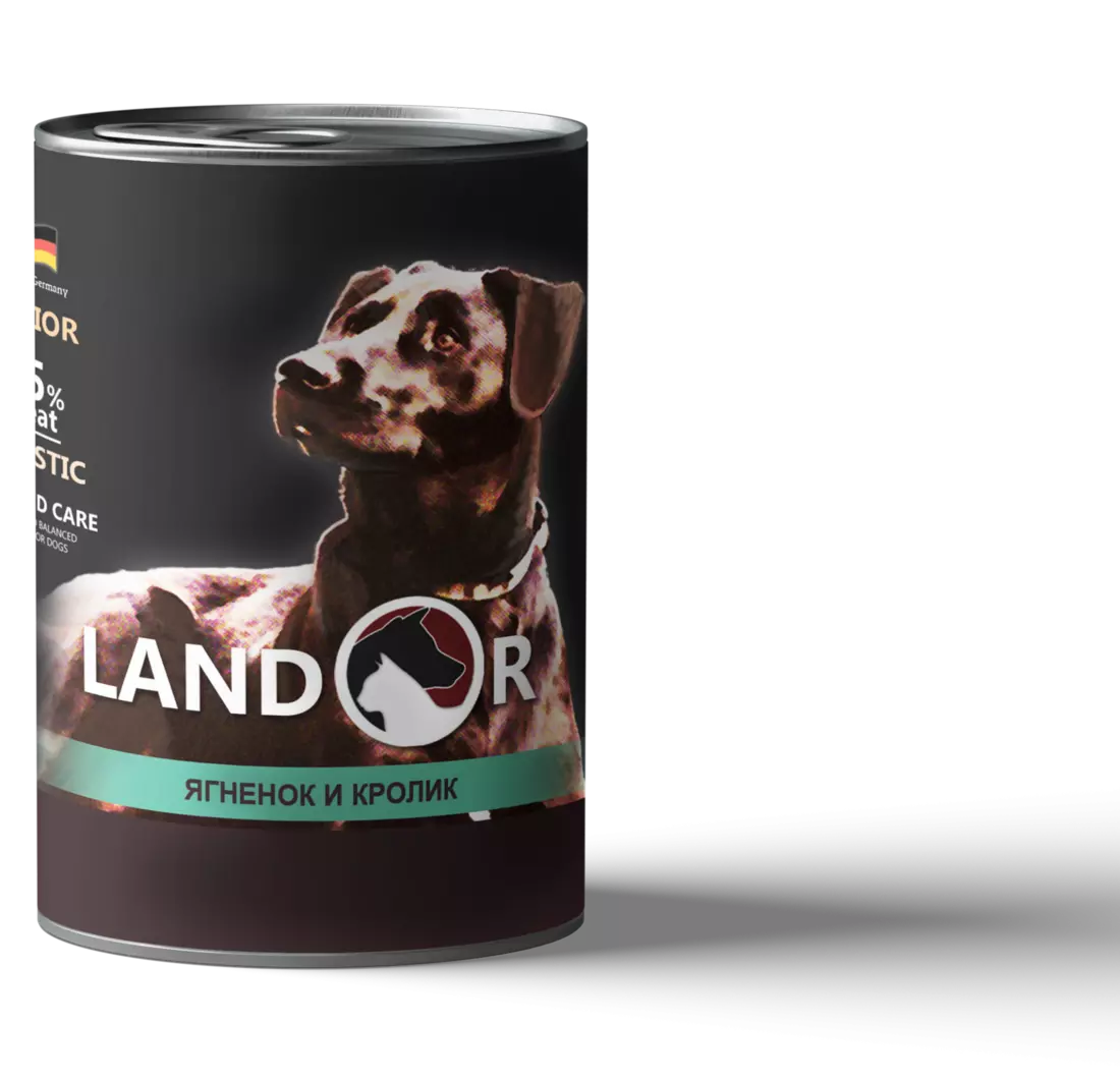 LANDOR Повноцінний збалансований вологий корм для літніх собак ягня з кроликом 0,4 кг