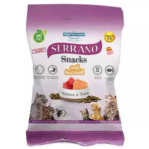 SERRANO Натуральные лакомства для котов, 50г с функцией выведения грудочек шерсти, ЛОСОСЬ И ТУНЕЦ